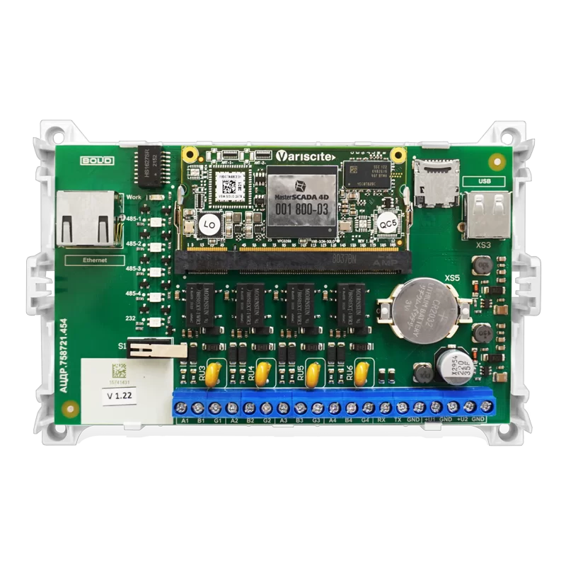 Технологический контроллер “М3000-Т Инсат” предназначен для создания систем автоматизированного управления технологическим оборудованием в энергетике, на транспорте, в т.ч. железнодорожном, в различных областях промышленности, жилищно-коммунального и сельского хозяйства. Логика работы ПЛК определяется потребителем в процессе программирования контроллера. Программирование осуществляется с помощью программного обеспечения Инсат Masterscada 4D. При этом поддерживаются все языки программирования, указанные в МЭК 61131-3. Сетевые интерфейсы: RS-485 – 4 шт., Ethernet – 1 шт. Разъёмы: SD-card, USB. Питание прибора: от внешнего источника питания постоянного тока. Напряжение питания: от 10,2 до 24,8 В. Потребляемая мощность: не более 3 Вт.